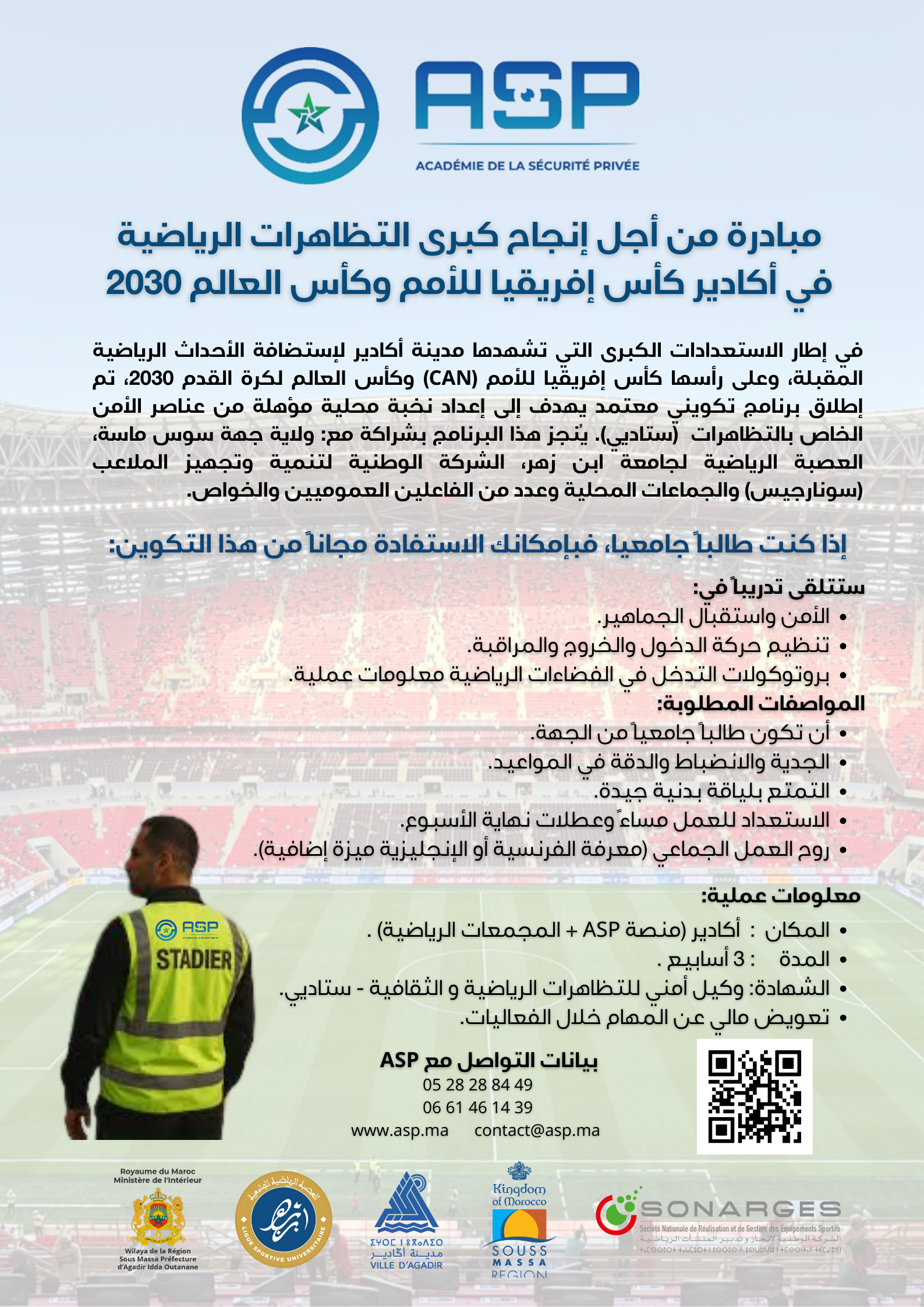 • مبادرة من أجل إنجاح كبرى التظاهرات الرياضية في أكادير كأس إفريقيا للأمم وكأس العالم 2030
